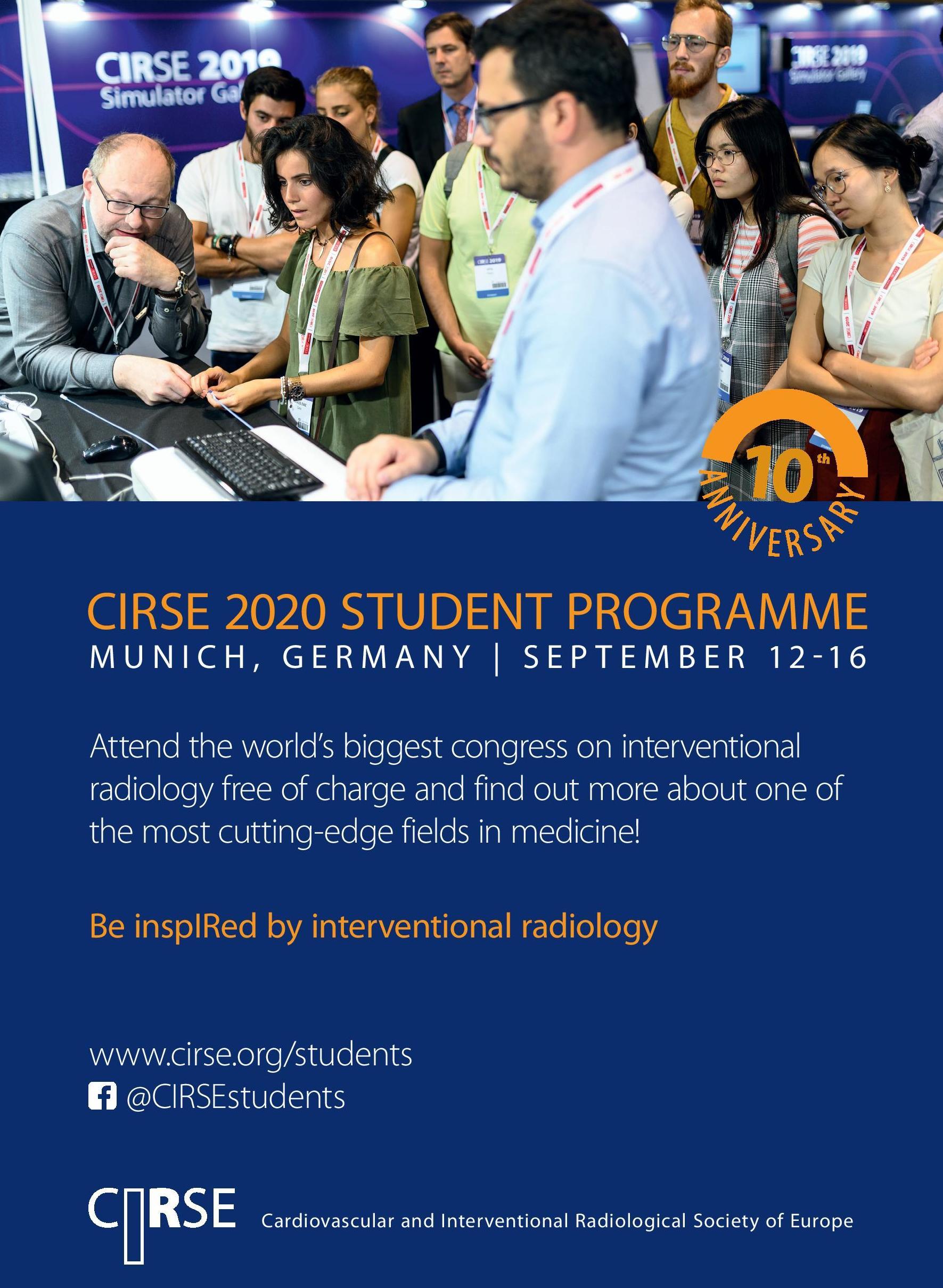 Im Rahmen des "CIRSE 2020 Student Programme" ist der Besuch und die Teilnahme am Kongress für Studenten kostenlos!