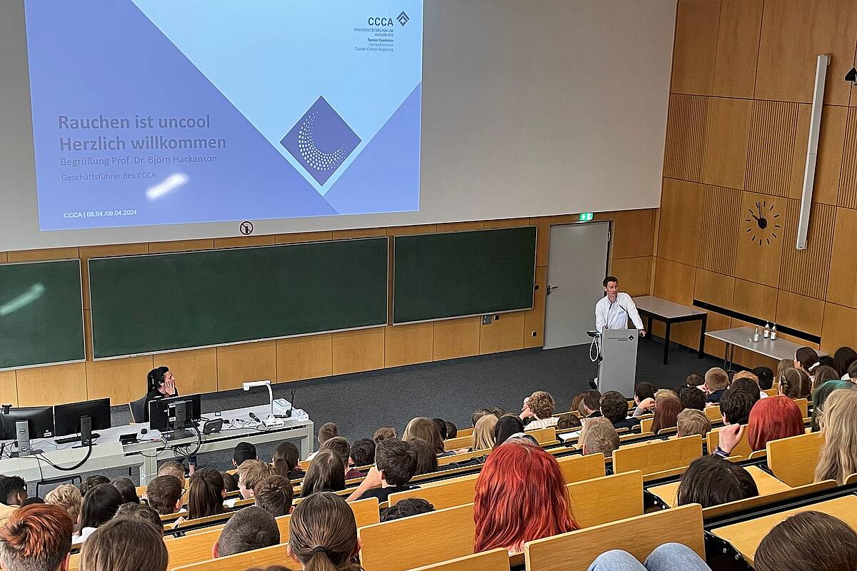 Am 8./9. April 2024 fand die Präventionsveranstaltung für Schulen „Rauchen ist uncool“ statt. Das Format blickt auf eine 15-jährige Geschichte zurück und konnte nun vom Comprehensive Cancer Center Augsburg (CCCA) in Kooperation mit der AOK Bayern – Die Gesundheitskasse erstmalig seit der Corona-Unterbrechung wieder aufgegriffen werden.