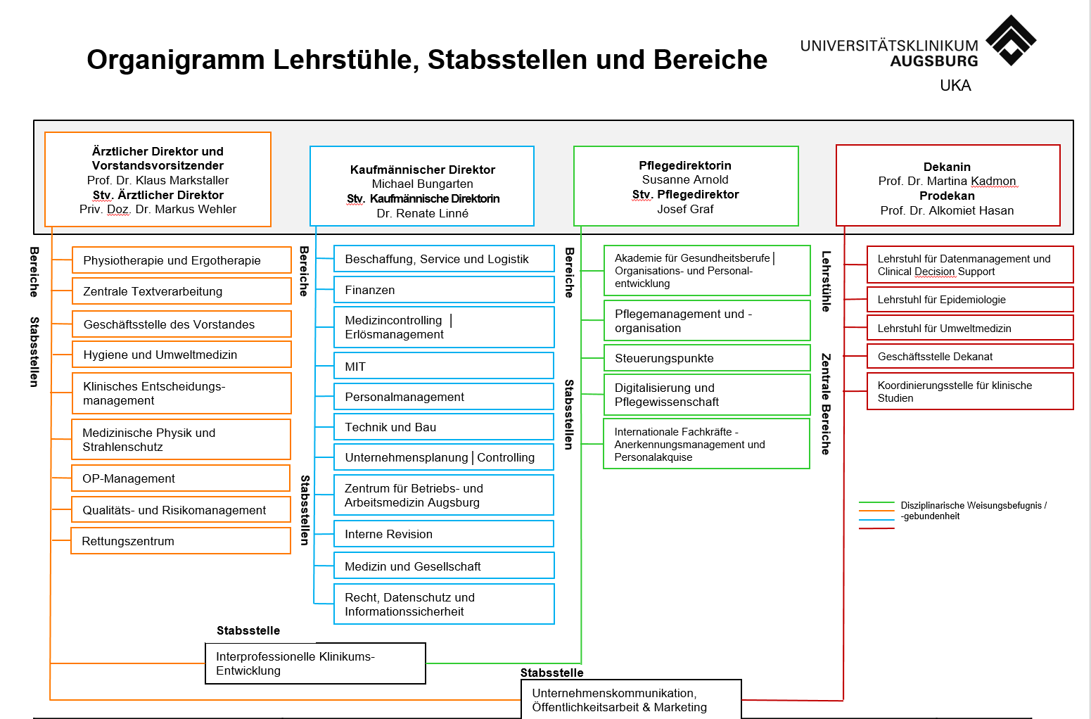 Organigramm der Bereiche und Stabsstellen