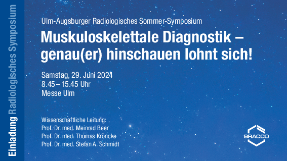 Auch 2024 findet wieder das traditionelle Sommersymposium in Ulm statt und widmet sich in diesem Jahr der muskuloskelettalen Diagnostik. Freuen Sie sich also auf spannende Vorträge von nationalen und internationalen Expertinnen und Experten!