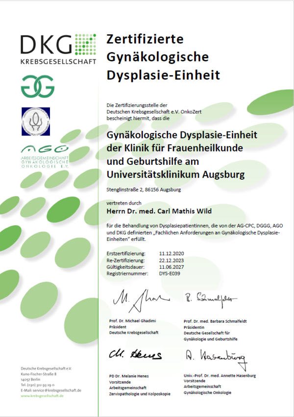 In einem endgültigen Arztbrief teilen wir Ihrem Frauenarzt alle Befunde mit. Bis zum Erhalt aller histopathologischen Untersuchungen vergehen nach der Operation meist 2-4 Wochen. In diesem Arztbrief beschreiben wir auch die von uns empfohlene Nachsorge. Diese besteht in der Regel aus einer gynäkologischen Untersuchung zusammen mit HPV- und PAP-Abstrichentnahme 6, 12 und 24 Monate nach OP bei Ihrem Frauenarzt.