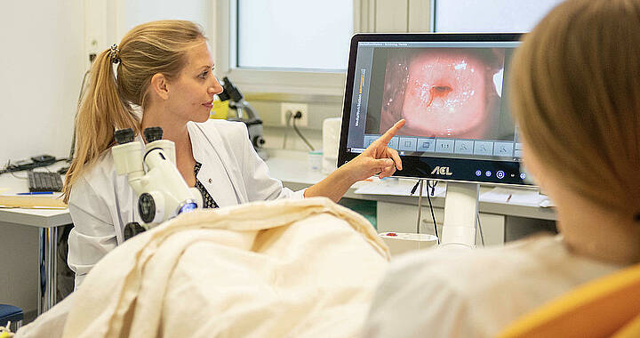 Bei Erstvorstellung in unserer Sprechstunde besprechen wir gemeinsam Ihre Vorgeschichte sowie die von Ihnen mitgebrachten Befunde. Im Anschluss folgt eine gynäkologische Untersuchung mit Betrachtung des Muttermundes bzw. des auffälligen Befundes durch eine Lupe (Kolposkop). Meist führen wir die sogenannte Essig- und Jodprobe durch und entnehmen ggf. eine Probebiopsie. Dies ist in der Regel schmerzfrei. Nach Erhalt der Ergebnisse besprechen wir mit Ihnen die Befunde und das weitere Vorgehen.