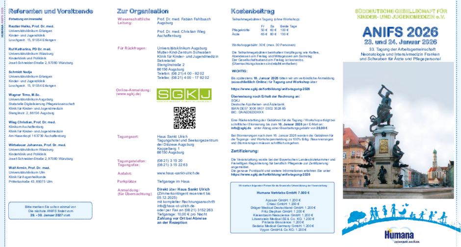 33. Tagung der Arbeitsgemeinschaft Neonatologie und Intensivmedizin Franken und Schwaben für Ärzte und Pflegepersonal