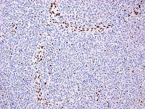 Abb. 3: SMARCB1/INI1 negativer Tumor mit positiv gefärbten Blutgefäßzellen