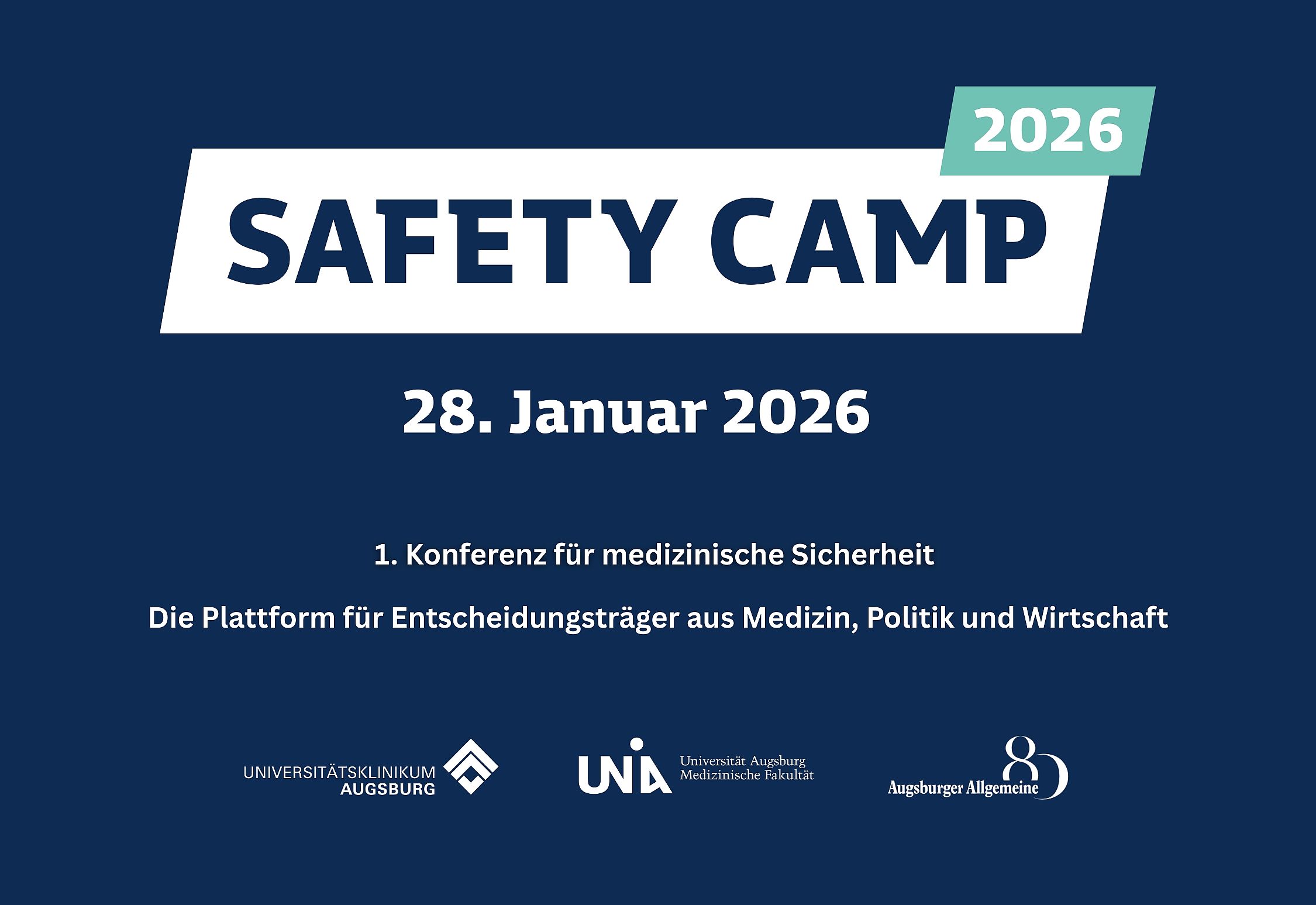 Gemeinsam mit der Augsburger Allgemeinen und der Medizinischen Fakultät bringt das UKA am 28. Januar 2026 erstmals führende Expertinnen und Experten aus Medizin, Politik und Wirtschaft zusammen, um die Sicherheitskultur im Gesundheitswesen zu stärken. Das umfangreiche Programm mit international hochkarätigen Speakern bietet ein vielseitiges Angebot zu Patientensicherheit, Cybersicherheit und Krisenresilienz in gesundheits- und geopolitisch herausfordernden Zeiten. „Für mehr Sicherheit in der Medizin - gemeinsam mit Politik und Wirtschaft. Das ist unsere Mission.“, erklärte Prof. Dr. Klaus Markstaller, unser Ärztlicher Direktor.
