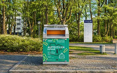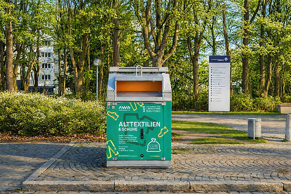 Das UKA setzt gezielte Maßnahmen zur Ressourcenschonung um. Ein Beispiel dafür ist die Förderung von Textilrecycling direkt auf dem Klinikgelände. Die Stabsstelle Medizin und Gesellschaft stellte in Kooperation mit dem Bayerischen Roten Kreuz zwei Kleidercontainer auf, um den Mitarbeitenden, Patientinnen und Patienten wie auch Besuchern eine einfache Möglichkeit zu bieten, gebrauchte Kleidung verantwortungsvoll zu entsorgen.