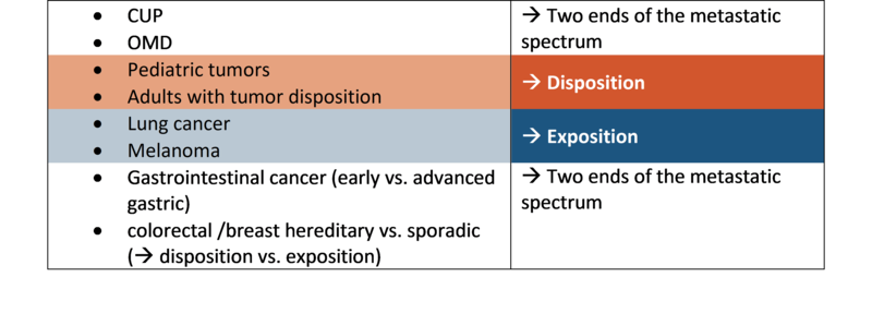 Certain oncological diseases are particularly well suited for this research area. Therefore, the following table lists index diseases that are mainly examined. In addition, all other neoplasms are also used as models if required.